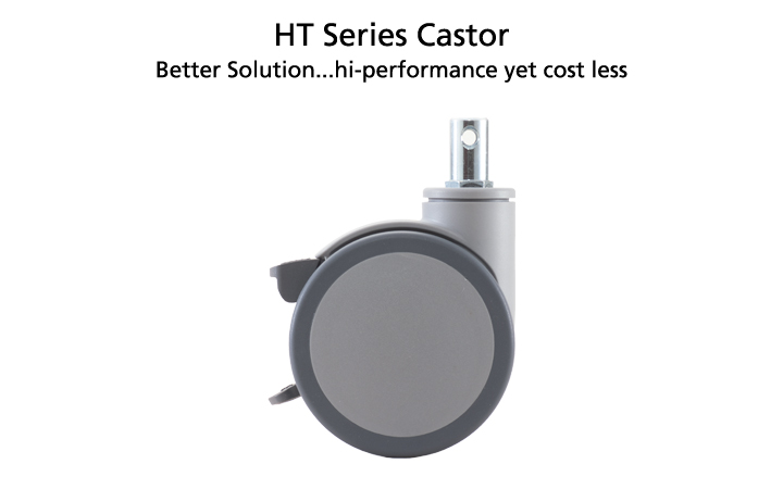 In essential, the HT is a descendent of twin-wheel series of TT castor which has stopped the world with its Trident Total Lock System and highly preferred on various mobile medical units. Remains unmatched in its reliability, this locking mechanism is faithfully passed on to HT.